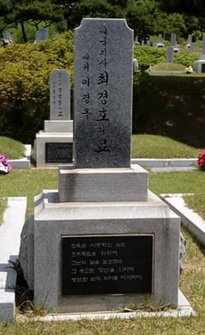 국립대전현충원 독립유공자 묘역(‘애국지사 묘역’으로 지칭했지만 최근 국립묘지의 설치 및 운영에 관한 법률 개정에 따라 명칭 변경)에서 영면(永眠)에 든 최경호(崔京浩) 선생(1898~1985). 그의 묘비에는 묘역을 찾은 이들의 마음을 숙연케 하는 이러한 문구가 새겨져 있다.