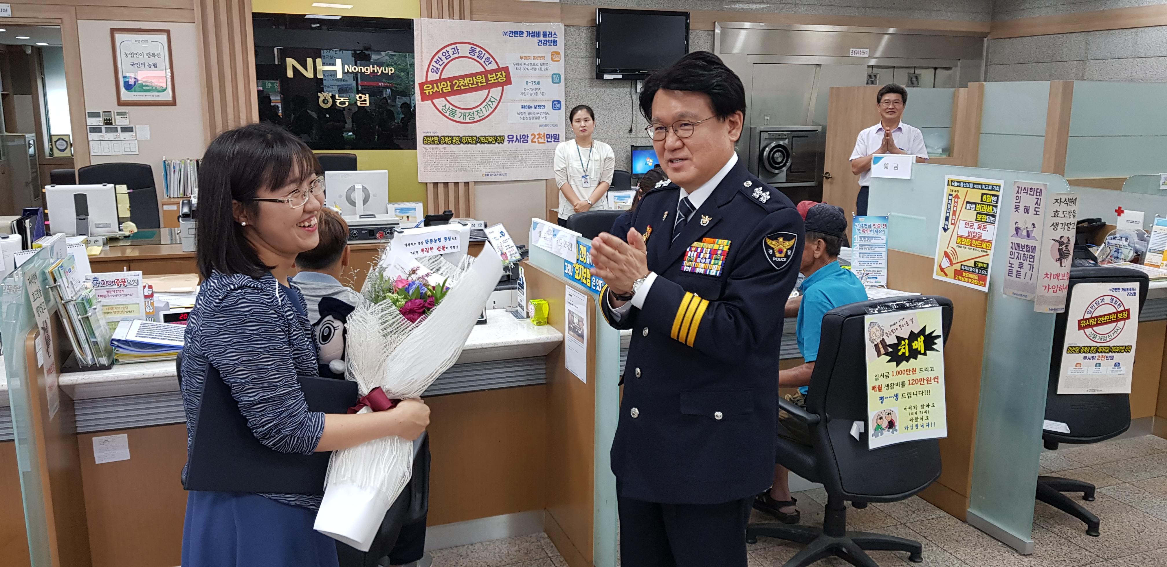 이날 황운하 대전지방경찰청장은 직접 탄동농협을 방문해 소중한 자산을 지켜낸 박정순 씨에게 감사의 뜻을 전했다.