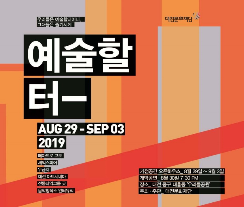 대전문화재단은 3일까지 원도심문화예술활동거점지원사업 6개 공간에서 ‘예술할 터’를 개최한다. 기획사업 거점공간을 시민들에게 오픈해 예술단체의 활동을 홍보하고 공간접근성을 높이기 위해 실시하는 예술할 터는 사업기간 내 각 공간에서 전시 및 공연이 펼쳐진다.