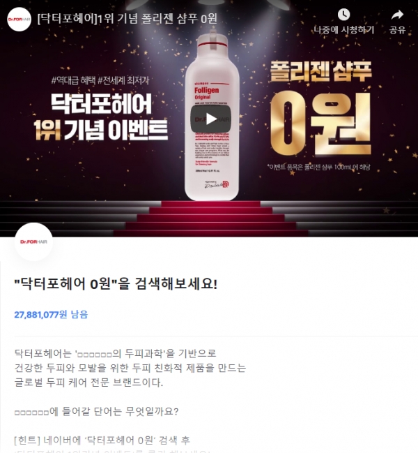 네이버에서 '닥터포헤어 0원'을 검색해 보면 힌트를 얻을 수 있다.