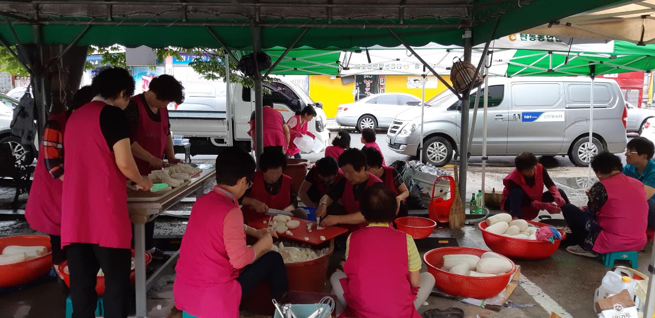 탄동농협 직원들이 4일 사랑의 반찬 나눔행사를 갖고 어려운 이웃과 조합원들에게 나눠줄 반찬들을 준비하고 있다. 탄동농협은 2011년부터 사랑의 반찬 나눔행사를 통해 매달 밑반찬과 김치 등을 만들어 가정을 방문하고 위로하고 있다. 농협중앙회 대전지역본부 제공