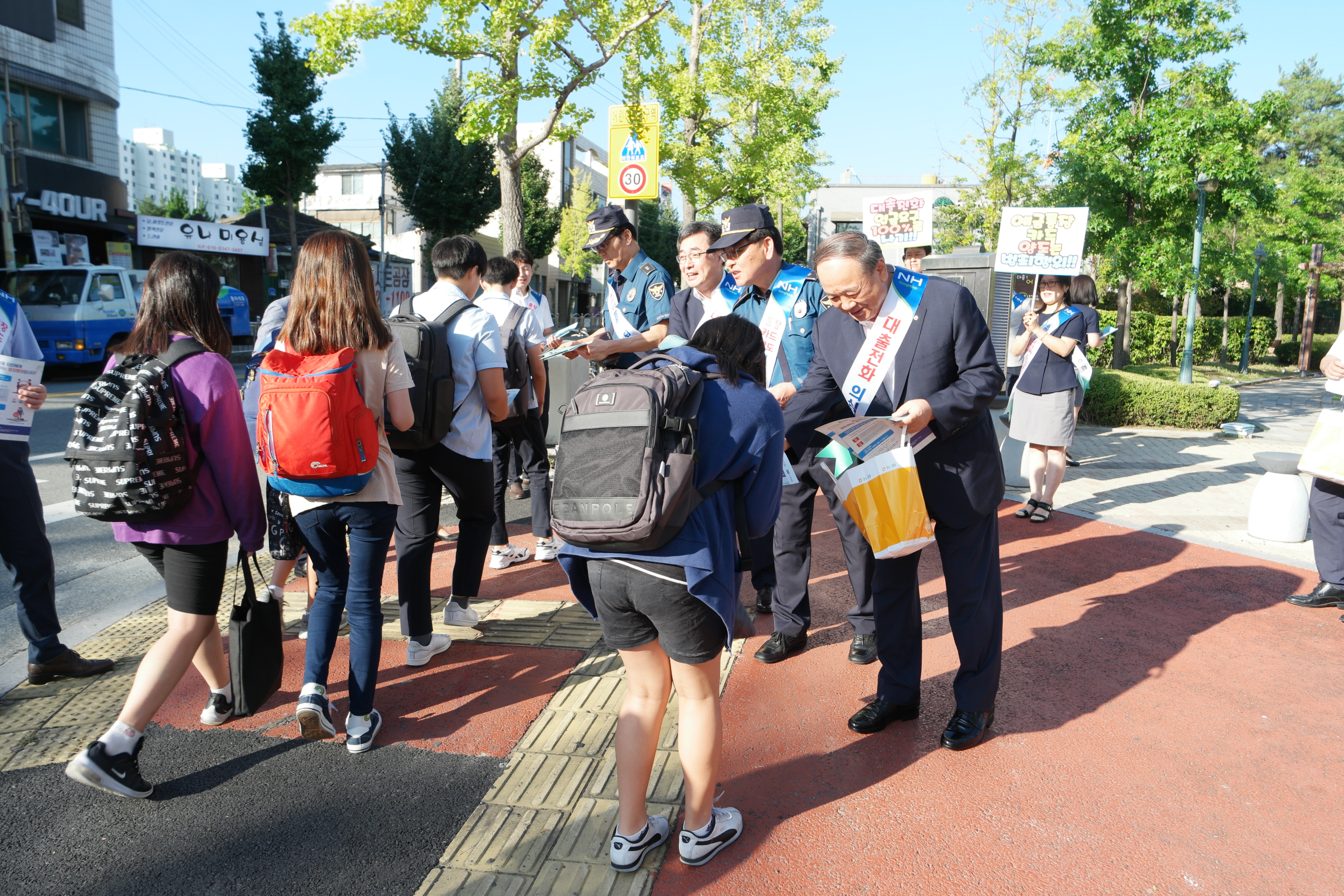 김의영 원예농협조합장(오른쪽 첫 번째)과 전용석 농협대전지역본부장(오른쪽 세 번째)이 18일 원예농협 인근 상가에서 학생들을 대상으로 보이스피싱 제로 운동을 펼치고 있다. 농협중앙회는 9월을 ‘대포통장 신규 발급 제로의 달’로 정하고 대국민 홍보를 통해 실질적인 대포통장 근절을 위해 힘쓰고 있다.
