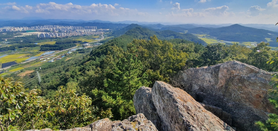 조망터 인근에 있는 거대한 암릉 위에 서면 대전의 서남부 끝자락에 위치한 성북동과 둘레산길 나머지 구간의 능선들이 시원하게 펼쳐지고 대전의 마지막 대규모 도시개발현장인 서남부지역이 한 눈에 들어온다. 월평공원과 도솔산 너머로 회색 빌딩숲이 가득 들어차 있고 그 반대편인 갑천변에서 새로운 도시개발의 손이 뻗쳐오고 있다. 도안신도시 개발이 완성되면 그 다음은 서남부권 개발이다. 지금은 벼가 익어가는 농지지만 조만간 이곳 용계동과 대정동, 교촌동 일원에서 도시개발이 시작된다. 이렇게 되면 호남고속도로에서 바라보는 대전의 풍경은 논이 아니라 아파트 숲으로 바뀐다.