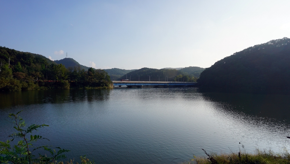 성북동산성에서 마지막 피치를 올린다. 산장산에 오르는 길인데 해발고도가 그리 높지 않아 크게 힘들진 않다. 약 25분 정도 소요된다. 산장산 정상엔 정자가 멋스럽게 조성돼 있다. 여기선 진잠동과 관저동이 바로 앞에 펼쳐진다. 하산하는 길, 널찍한 너럭바위가 눈에 들어온다. 그리고 그 뒤로 방동저수지가 보인다. 500m 정도 더 내려가면 또 다른 정자를 만나게 되는데 11구간 구봉산 능선이 뚜렷하게 조망된다. 계속 내리막, 방동저수지에서 구간을 마무리한다. 계룡산 금수봉과 백운봉 골짜기에서 발원한 성북천 물길은 방동저수지에서 평온하게 잠시 머무른다.