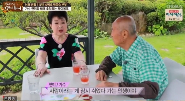 이날 가수 현미가 박병호 박종숙 부부를 찾아왔다. 현미는 “6,7년을 남해에서 공연을 했었다”며 박병호와 만나게 된 계기를 전했다.이어 현미는 “당시에 박병호와 친해지던 시기에 사람들이 ‘박병호씨 스님됐죠?’라고 말했다”고 말해 웃음을 자아냈다.