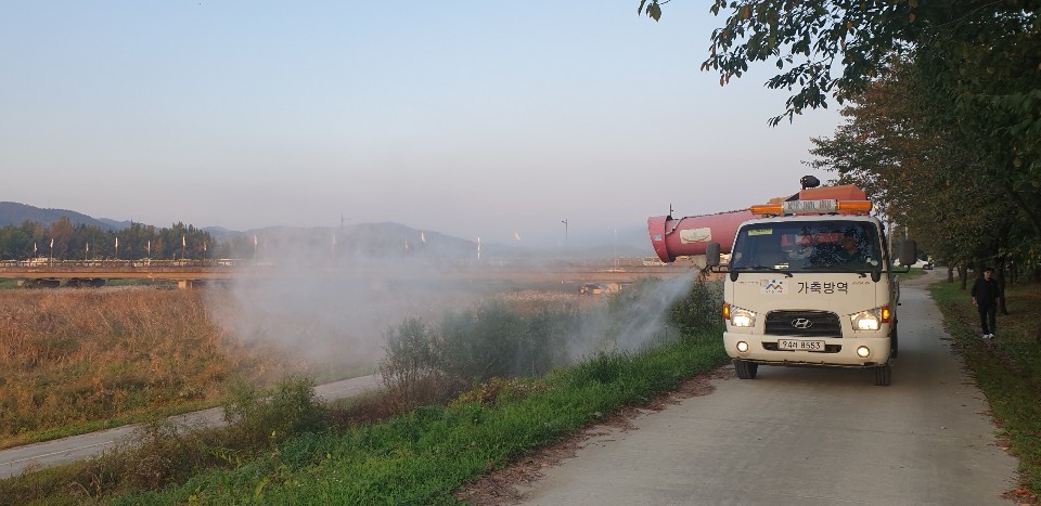 아산시가 권곡동 곡교천 주변 야생조류 분변에서 조류 인플루엔자(AI) 바이러스가 검출되자 21일 발생지역 주변 철새도래지에서 방역하고 있다. 아산시 제공 아산시가 권곡동 곡교천 주변 야생조류 분변에서 조류 인플루엔자(AI) 바이러스가 검출되자 21일 발생지역 주변 철새도래지에서 방역하고 있다. 아산시 제공
