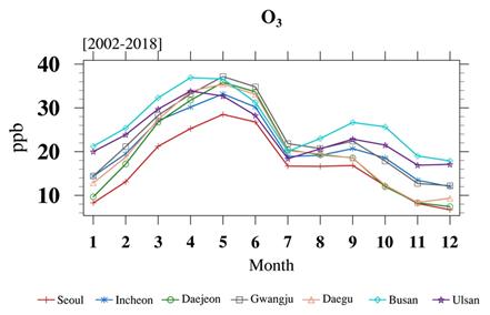 오존의 도시별 월별 자료를 분석한 결과에서는 2002년부터 2018년까지 지역이나 계절에 관계없이 시간이 지남에 따라 농도가 지속적으로 높아지고 있는 확인됐다. 연구팀은 그러나 오존의 지속적인 증가 추세는 오존의 생성과 소멸에 관여하는 이산화질소 농도와는 추세가 다르다면서 오존의 지속적인 증가 원인에 대해서는 추가적인 연구가 필요하다고 밝혔다.