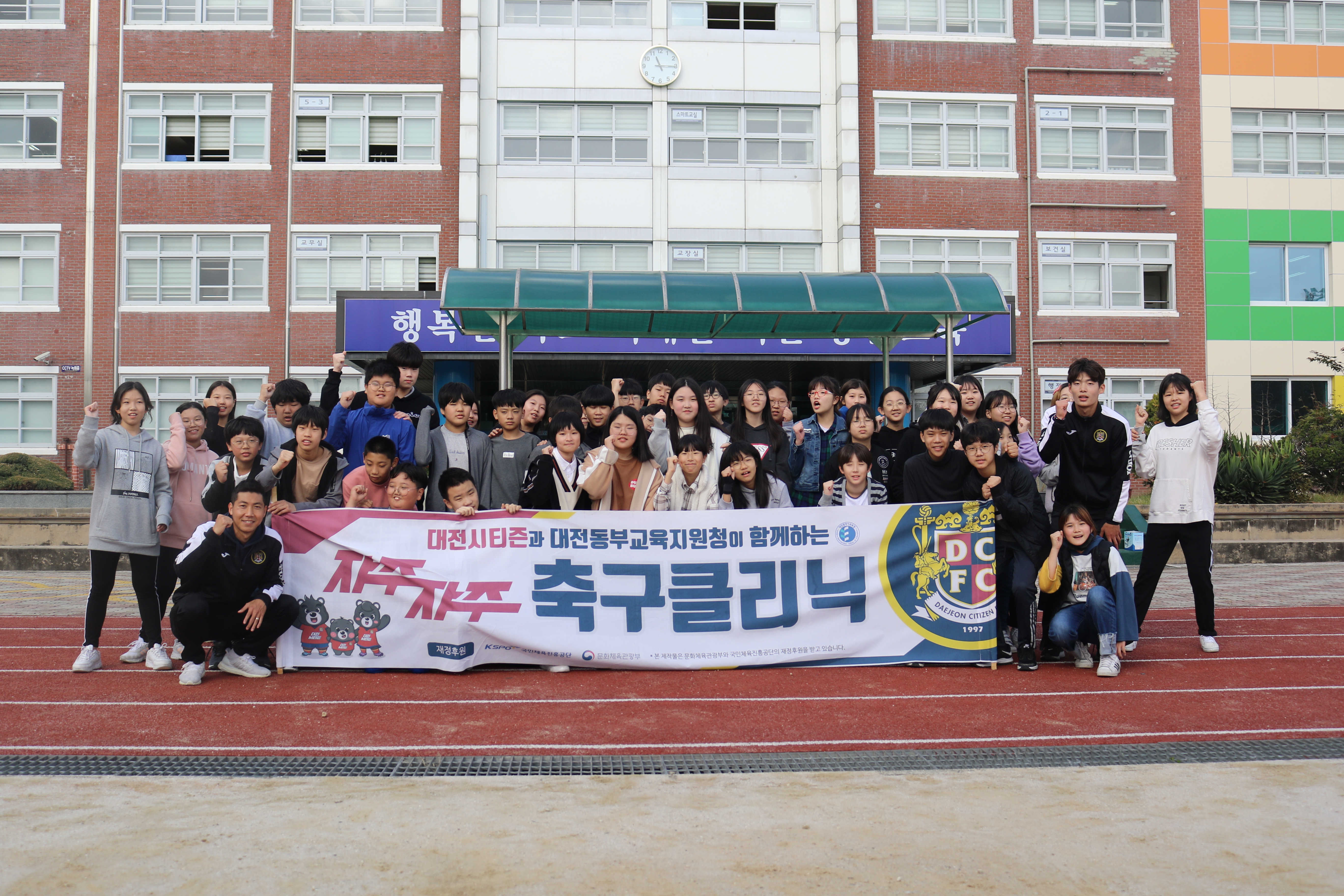 프로축구 K리그2 대전시티즌이 최근 대전중촌초등학교 방문을 끝으로 올해 예정된 자주자주축구클리닉 프로그램을 마무리했다. 시티즌의 대표적인 지역밀착활동 중 하나인 자주자주축구클리닉은 올해 5년째를 맞이했으며 대전동부교육지원청과 협업으로 관내 교육복지사업 학교에서 매해 4월부터 10월까지 실시된다. 올해는 석교초, 보성초, 중앙초, 대암초, 한밭여중, 중원초, 동산중, 태평중, 용운중, 충남중, 산성초, 자양초, 신평초, 한밭중, 중촌초 등 15개 학교에서 학생 400여 명을 대상으로 축구클리닉 프로그램을 운영했다. 시티즌 관계자는 “올해 자주자주축구클리닉을 여성축구동아리, 대안학교, 시각장애인 축구팀 등으로 범위를 넓혀 더 의미가 있었다”며 “시티즌은 내년에도 축구 동호회, 학생들과 함께하는 여러 프로그램을 시행할 계획”이라고 말했다. 이와 함께 시티즌은 오는 9일 대전월드컵경기장에서 광주FC를 상대로 하나원큐 K리그2 2019 36라운드 홈경기를 갖는다. 이날 시즌 마지막으로 치러지는 경기는 E, S석에 한해 50% 할인된 가격에 입장권이 판매된다. 이준섭 기자 ljs@ggilbo.com