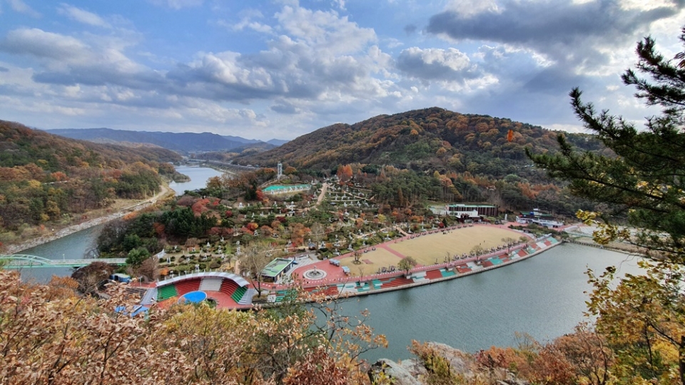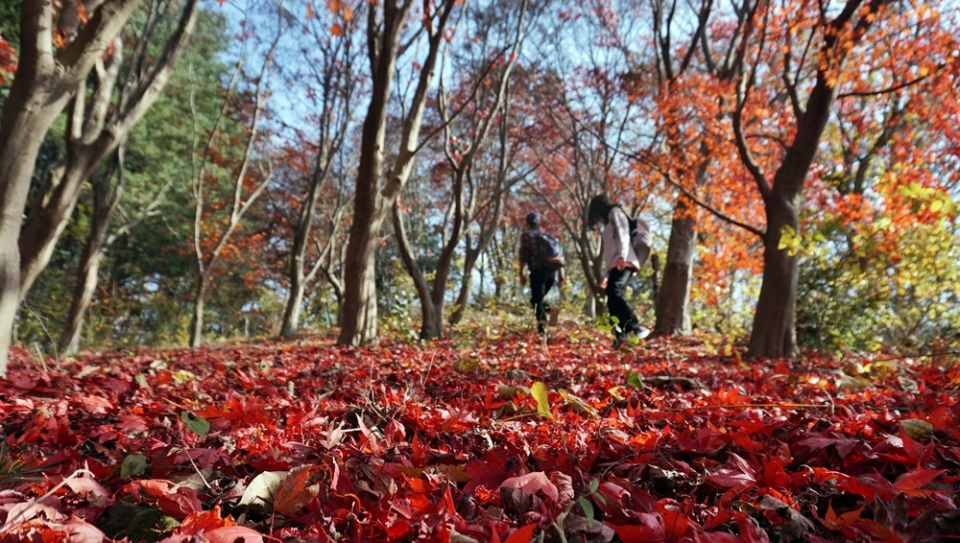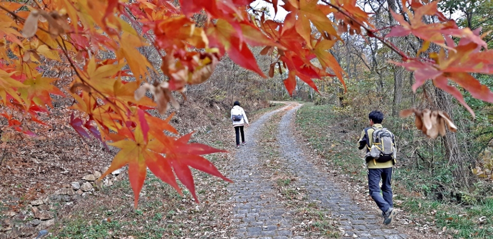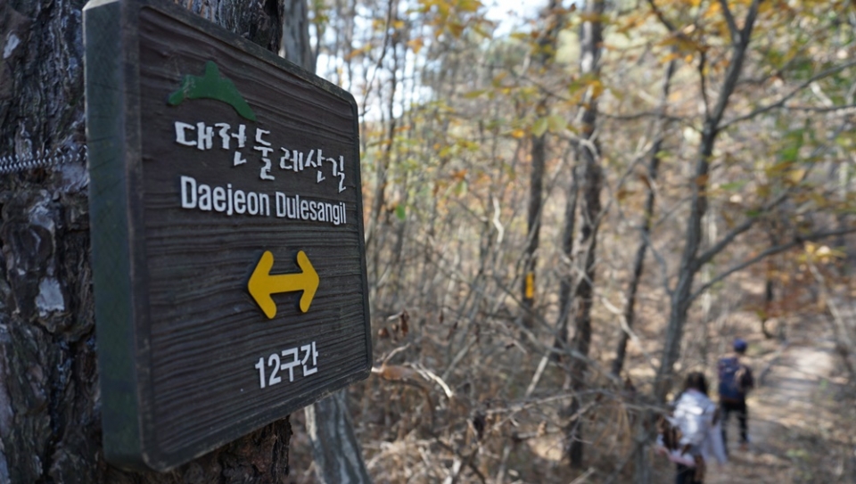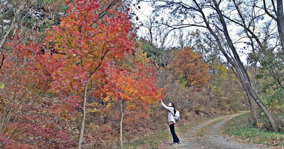 고갯길 지나 이정표를 따라 만성산에 진입한다. 빨갛게 물든 단풍나무 군락이 눈길을 사로잡는다. 알록달록 단풍낙엽은 산기슭을 온통 붉게 물들여 발길을 놓아주지 않는다. 일 년에 딱 한 번, 만추에만 만날 수 있는 이 풍경은 산 정상에서 만나는 탁 트인 조망 그 이상의 감동을 선사한다. 만추의 절경을 뒤로하고 다시 발걸음을 재촉한다. 대전과 금산의 경계를 이루는 여울을 넘어 흐르는 유등천이 눈에 들어온다. 금산 발원지부터 지방2급 하천으로 분류되는 유등천은 여기서부터 국가하천으로 격상돼 갑천과 합류하기 전까지 15.5㎞를 흐르면서 중구와 서구의 경계 역할을 한다.