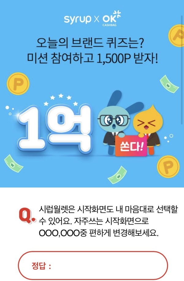 시럽이 OK캐쉬백과 함께 오퀴즈를 출제해 정답이 관심 집중이다.