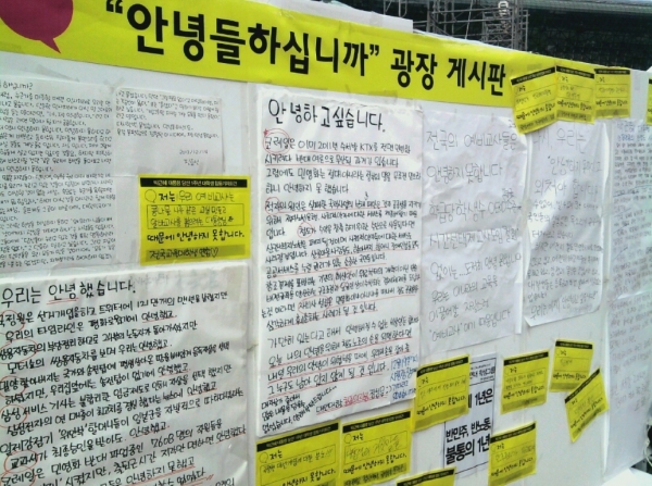 ▲12월 10일=대자보 문화를 다시 불러 일으킨 ‘안녕들하십니까?’란 대자보가 등장하다.