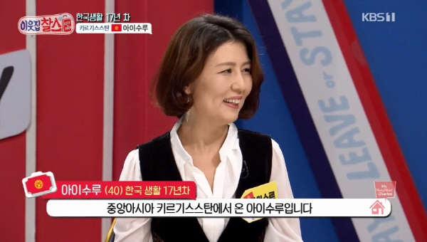 10일 방송된 KBS '이웃집 찰스'에는 10시간을 날아온 키르스스탄인 아이수루 씨가 전파를 탔다.