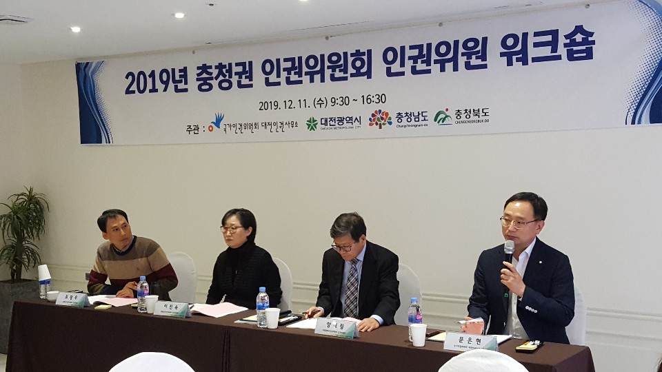 11일 대전 유성 스탕달호텔에서 국가인권위원회 대전인권사무소와 대전·충남·충북 공동 주최로 ‘지역 인권보장체제 구축을 위한 인권위원의 역할 강화 방안 모색’ 워크숍이 열려 토론 패널들이 현안을 논의하고 있다. 토론 패널들은 다양한 방법론에 대해 의견을 나누면서도 지역인권체제의 실질화를 위해선 자체 인권위원회를 현재의 심의·자문기구에서 독립적인 합의제 행정기구로 전환해야 한다”는데 한 목소리를 냈다. 대전인권사무소 제공