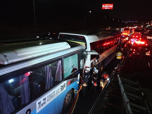 17일 저녁 7시 50분께 경부고속도로 판교나들목 인근에서 평택과 강남역을 오가는 광역버스가 관광버스를 들이받았다.