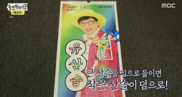 21일 방송된 MBC 예능프로그램 '놀면 뭐하니? - 뽕포유'에서는 트로트 가수 '유산슬'로 변신한 유재석의 모습을 담은 2020년 달력을 선보였다.