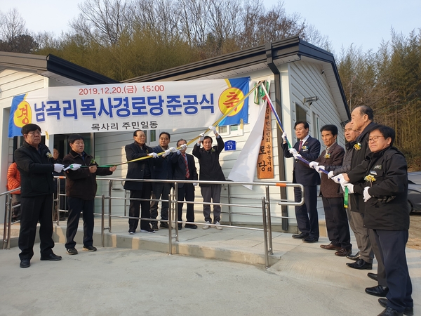 옥천 동이면 남곡리 마을 목사 경로당이 지난 20일 준공식을 가졌다.
