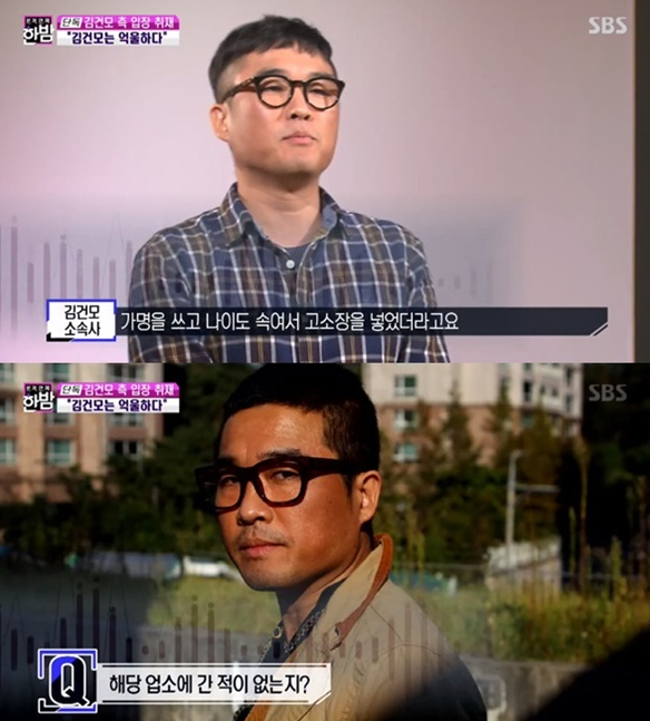 17일 밤 방영된 SBS 연예정보프로그램 '본격연예 한밤'(이하 '한밤')에는 김건모 측의 인터뷰 내용이 담겨있었다. 김건모 측은 '한밤' 제작진에게 "여론에서 너무 나쁜 사람을 만들어놔서 어쩔 수 없이 대응을 하기 시작한 것"이라고 호소하기도 했다.