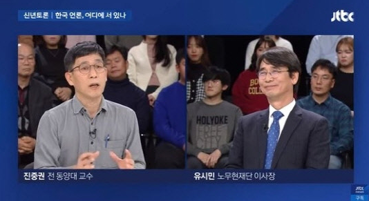 'JTBC 뉴스룸 신년특집 대토론'에 출연한 유시민과 진중권이 날 선 신경전을 벌였다.