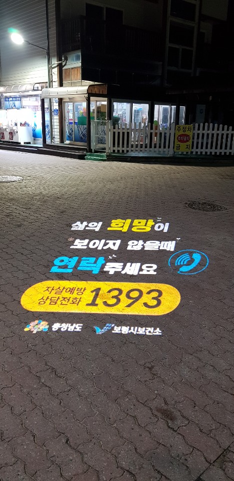 이번에 설치한 로고젝터에는 '삶의 희망이 보이지 않을 때 연락주세요', '소중한 생명 함께하면 지킬 수 있습니다' 등의 자살예방 표어 공모전 당선작 문구와 자살예방 상담전화(1393) 안내 문구를 담았다.