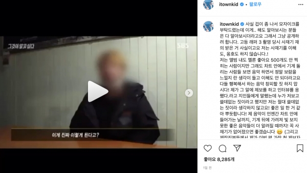 사진과 함께 그는 방송프로그램 ‘고등래퍼 시즌3’ 출연당시 음원사재기를 제의받은 사실을 폭로하였다. 이 게시물에 대해 가수 아이유는 좋아요를 누르며 옹호하기도 하였다.