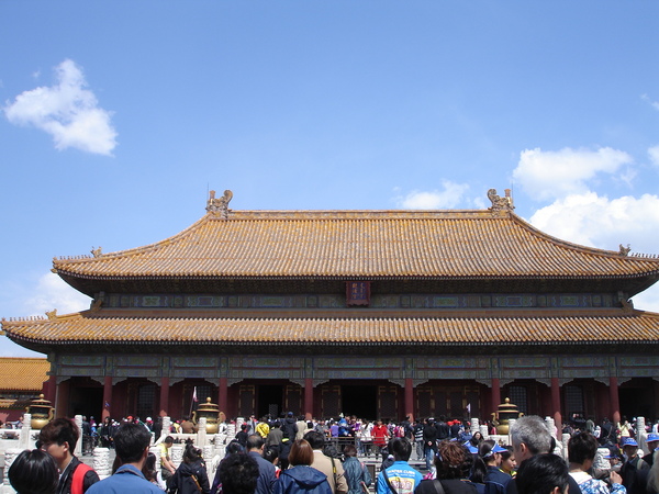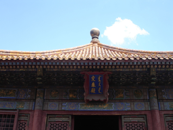 자금성 건물들은 황제를 상징하는 황금빛깔과 그밖의 건물과 담장은 중국 특유의 붉은 빛깔로 칠했으며, 이런 모든 전각의 현판을 한자와 청의 만주어로 함께 표기한 것은 무력으로는 명을 정복시켰으나 문화창조능력에서는 뒤떨어진 만주족이 한족의 문물을 그대로 수용했음을 보여주는 증거이기도 하다. 자금성은 청의 마지막 황제 부의(溥儀)가 세 살 어린 아기 때 황제가 되어 일제 침략 후 포로로 전락하는 과정을 보여주던 영화 ‘마지막 황제’에서 자금성의 안팎이 자세히 소개된 것을 기억하고 있지만, 그런 근엄함이나 칙칙함은 아무 곳에서도 찾을 수가 없었다.