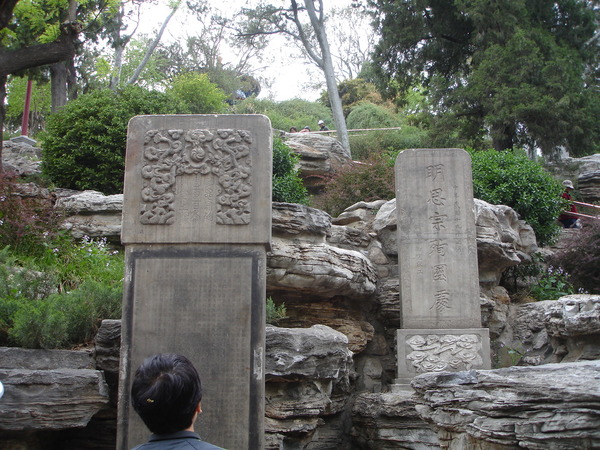 정문은 자금성의 북문 쪽인 만세문(萬世門)인데, 이 곳에서부터 경산의 꼭대기인 만춘정(萬春亭)까지는 자연석으로 만든 돌계단이고, 정상에는 부처상이 자금성을 내려다보고 있다. 정문의 왼편에는 명의 마지막 황제 숭정제 신종이 1644년 이자성 태평청국 농민군이 북경을 침략하자, 자금성을 탈출하여 경산에서 불타는 자금성을 바라보다가 고목나무에 목을 매어 자살한 곳에 표지석을 세워두었다.