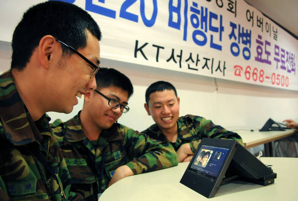 충남 서산 공군 제20전투비행단과 KT서산지사가 ‘어버이 날’을 맞아 ‘효도전화DAY’를 운영해 큰 호응을 얻었다. ‘효도전화DAY’는 지난 5 ~ 9일까지 5일간 장병들이 부모님께 감사의 마음을 전할 수 있도록 부대 내에 화상전화기 등 총 12대의 ‘효도전화’를 설치해 무료로 안부전화를 할 수 있도록 배려한 것. 오원일 정보통신대대장은 “병사식당, 보라매회관 등 5개소에 ‘효도전화’를 설치해 장병들이 부모님께 감사의 마음을 전할 수 있도록 했다”며 “천안함사건으로 잠 못 드실 부모님께 장병들의 힘찬 목소리는 가장 좋은 선물이 될 것”이라고 말했다. 이강원 KT서산지사장은 “반응이 좋아 앞으로 추석이나 설날 등 명절에도 ‘효도전화’를 설치 운영할 수 있도록 관계자와 상의 중”이라고 말했다.