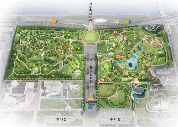 엑스포과학공원에서 엑스포다리를 통해 갑천을 건너면 도심 속 힐링의 시간도 만끽할 수 있다. 엑스포시민광장 주변(둔산대공원)엔 중부권 최대 수목원인 한밭수목원과 대전시립미술관, 이응노미술관 등 대전을 대표하는 문화예술의 메카가 집중돼 있다. 한밭수목원은 37만 1000㎡의 드넓은 인공 구릉지에 무궁화원, 야생화원, 관목원, 목련원, 암석원 등 24개 주제별로 목본류 1105종, 초본류 682종 등 총 1787종의 식물자원을 식재·전시하고 있으며 우리나라 최초로 ‘지구의 탄소 저장소’로 불리는 맹그로브를 주제로 한 열대식물원도 조성돼 있다. 한밭수목원과 맞닿아 있는 대전시립미술관과 이응노미술관은 25일 휴관하고 26일과 27일엔 문을 연다.