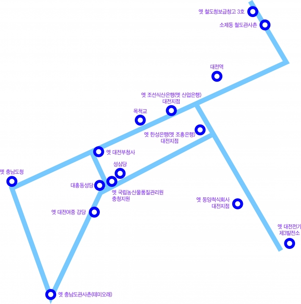 으능정이 거리 인근엔 우리나라를 대표하는 동네빵집으로 유명한 성심당과 두부두루치기로 유명한 진로집 등 맛집들이 즐비하고 대전근대문화유산 탐방로도 조성돼 있어 대전의 맛과 멋을 두루 누릴 수 있다.