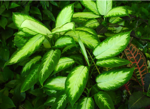 디펜바키아는 잎의 무늬가 다양하고 넓고 시원스러워 좁은 실내에서도 관상하기 좋은 식물이다. 식물체내에 독성이 있어서 붙여진 듯한 꽃말은 ‘경계’. 실제로 잎을 잘라 튤립과 같이 꽂아두면 튤립의 절화수명이 훨씬 길어지는데 이것은 디펜바키아에 있는 성분이 튤립 절단면에서 생성돼 도관의 흡수를 막는 박테리아의 증식을 방해하기 때문이다. 영명(Dumb plant, Mother-in-law's tongue)이 참 재미있다. 장모님 말씀에 독설이 있다는 얘긴지, 아님 긴 타원형의 잎이 장모님 혀를 닮았다는건지…