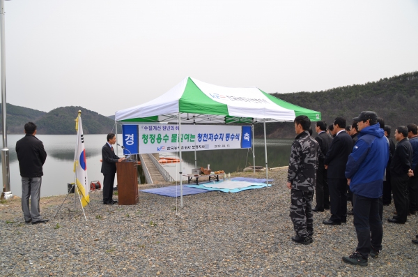 한국농어촌공사 보령지사는 지난 13일, ‘수질개선 2년의 해’를 맞아 청정용수 물길 여는 청천저수지 통수식을 개최했다.