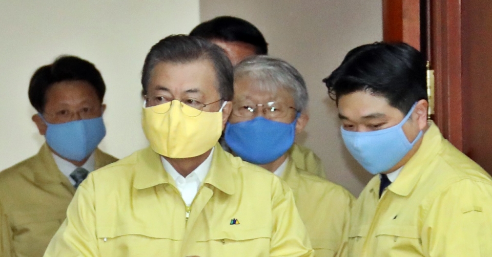 문 대통령이 이날 사용한 마스크는 취약계층을 지원하기 위한 마스크였다는 것이 청와대의 설명이다. 윤재관 청와대 부대변인은 이날 오후 청와대 출입기자 단체SNS메신저에 올린 ‘오늘 국무회의시 대통령 착용 노란 면마스크 안내’ 글에서 “오늘 대통령이 착용한 노란 마스크는 대전 마을공동체 활동가들이 만든 것으로 취약 계층 등에게 전달되고 있는 마스크”라고 설명했다.