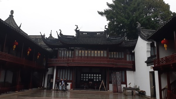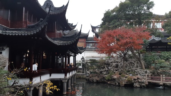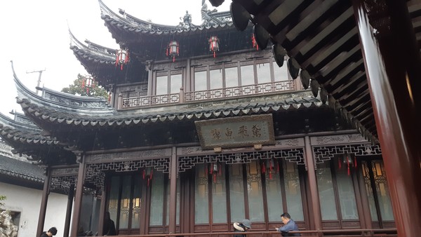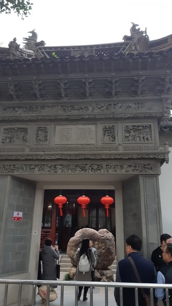 먼저, ‘가면 갈수록 경치가 아름다워진다’라는 ‘점입가경(漸入佳境)’이란 고사를 딴 행랑의 입구 양편에 사자상은 원시대 작품이라고 하는데, 왼쪽에 새끼를 발로 살짝 밟고(?) 있는 것은 암사자이고, 오른쪽 구슬을 밟고 있는 것이 수놈이다. 사자는 원래 중국에서 살지 않는 동물이어서 상상의 동물이고, 중국에서는 구슬이 우주를 통치하는 권력을 상징하고, 어미 사자는 발톱에서 젖이 나온다고 믿었다. 물론 예원을 조성할 때 지금처럼 많은 관광객이 찾아올 것은 상상도 하지 않았을 것이어서 오솔길처럼 좁고 구불구불한 회랑과 다리를 따라 40개의 정자와 누각. 연못과 석가산을 산책하며 감상하던 것과 달리 수많은 인파가 짧은 시각에 주마간산식으로 돌아보자면 부딪히기 일쑤이고 통로가 옹색스럽게 느껴지기까지 한다.