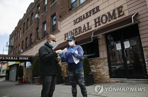 뉴욕주에서는 환자가 10만명을 넘겼다. 앤드루 쿠오모 주지사는 하루 새 환자가 1만명이나 늘며 총 환자 수가 10만2863명으로 늘었다고 밝혔다. 사망자도 2935명으로 늘었다. 사망자가 치솟으면서 뉴욕주에서는 장의사들이 시신을 안치할 공간 부족에 시달리고 있다.