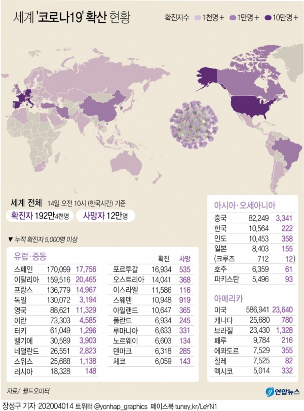 [미국 코로나 사망자] 전 세계 코로나19 확진자 200만명 돌파
