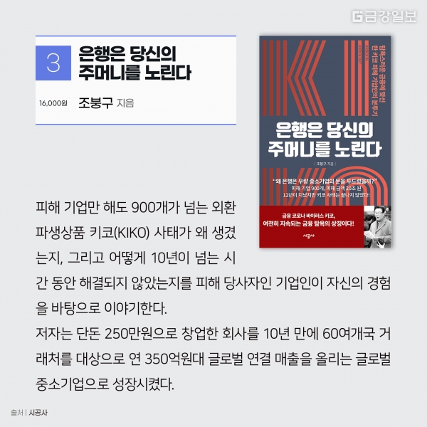 피해 기업만 해도 900개가 넘는 외환파생상품 키코(KIKO) 사태가 왜 생겼는지, 그리고 어떻게 10년이 넘는 시간 동안 해결되지 않았는지를 피해 당사자인 기업인이 자신의 경험을 바탕으로 이야기한다.