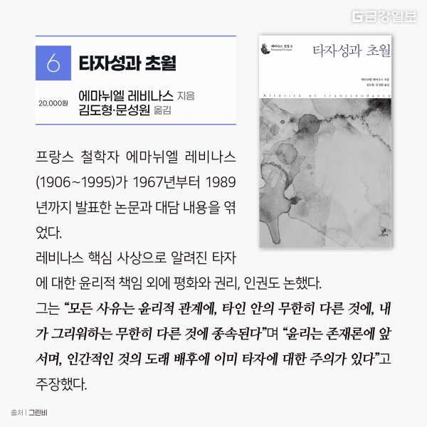 그는 “모든 사유는 윤리적 관계에, 타인 안의 무한히 다른 것에, 내가 그리워하는 무한히 다른 것에 종속된다”며 “윤리는 존재론에 앞서며, 인간적인 것의 도래 배후에 이미 타자에 대한 주의가 있다”고 주장했다.