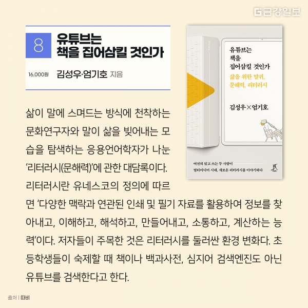 삶이 말에 스며드는 방식에 천착하는 문화연구자와 말이 삶을 빚어내는 모습을 탐색하는 응용언어학자가 나눈 ‘리터러시(문해력)’에 관한 대담록이다.