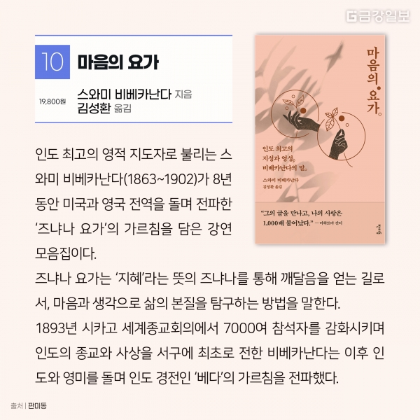 인도 최고의 영적 지도자로 불리는 스와미 비베카난다(1863~1902)가 8년 동안 미국과 영국 전역을 돌며 전파한 ‘즈냐나 요가’의 가르침을 담은 강연 모음집이다.