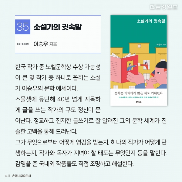 그가 무엇으로부터 어떻게 영감을 받는지, 하나의 작가가 어떻게 탄생하는지, 작가와 독자가 지녀야 할 태도는 무엇인지 등을 말한다. 감명을 준 국내외 작품들도 직접 조명하고 해설한다.