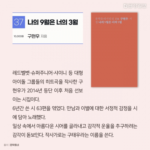 레드벨벳, 슈퍼주니어, 샤이니 등 대형 아이돌 그룹들의 히트곡을 작사한 구현우가 2014년 등단 이후 처음 선보이는 시집이다.