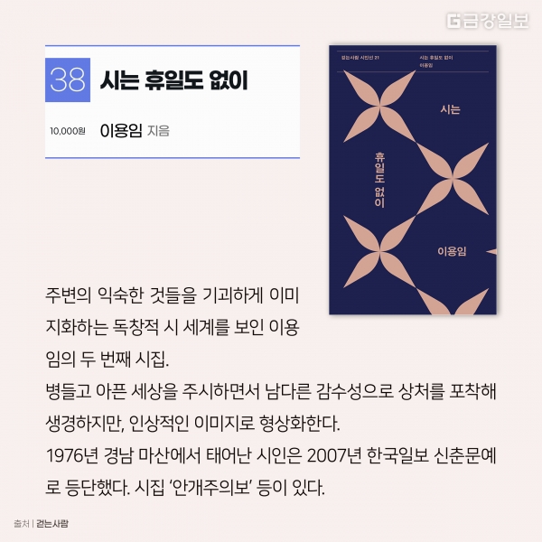 1976년 경남 마산에서 태어난 시인은 2007년 한국일보 신춘문예로 등단했다. 시집 ‘안개주의보’ 등이 있다.
