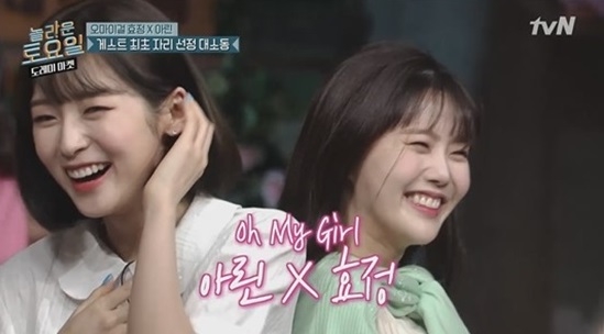 2일 방송된 tvN 예능프로그램 '놀라운 토요일 - 도레미마켓'(이하 '놀토')에는 그룹 오마이걸의 효정과 아린이 게스트로 출연했다. 이날 소허파전골 라운드에서 출제된 문제는 그룹 TXT(투모로우바이투게더)의 '9와 4분의 3 승강장에서 너를 기다려'다.