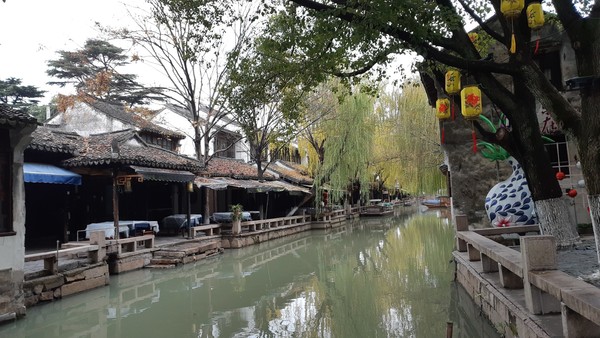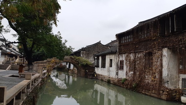 정원의 도시 쑤저우에서 원림(園林)이 귀족이나 부호들의 개인 정원이라면, 자연적인 호수마을에 주민이 사는 곳을 수향(水鄕)마을이라고 한다. 원림이 물, 돌, 나무로 장식한 인위적인 정원이라고 하면, 수향마을은 자연상태의 마을이다. 쑤저우에서 가장 대표적인 수향마을은 쑤저우 남동쪽으로 약 40㎞ 떨어진 저우좡(周庄) 마을인데, 이곳은 행정구역상 장쑤성 쑤저우지 쿤산시(苏州市 昆山市) 저우좡 마을이다. 마을의 원래 이름은 장풍리(贞丰里)였으나, 1086년 북송 때 독실한 불교 신자인 주적공랑(周迪功郎)이 토지를 절에 기증하자 그를 기려서 그의 성인 ‘주(周)’를 따서 ‘저우좡’이라 부르게 되었다.