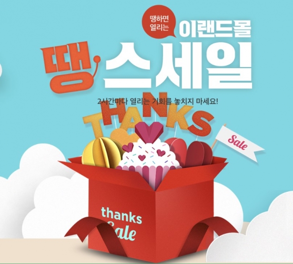 우선 오전 9시부터 오후 5시까지 진행되는 이랜드몰 땡스세일은 두 시간마다 선착순 고객에 한해 인기상품을 초특가에 제공한다.