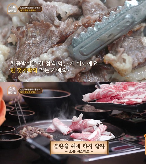 SBS 예능 프로그램 ‘외식하는 날2’ 지난 27일 방송분에서 홍현희, 심진화, 홍윤화 세 사람이 소고기 전문점을 방문해 차돌박이 먹방을 선보였다.