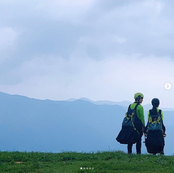 공개된 사진 속에는 tvN '바퀴 달린 집'에서 여행을 떠난 여진구, 아이유의 모습이 담겨있다. 두 사람은 산 위에서 패러글라이딩을 준비하고 있어 눈길을 끈다.
