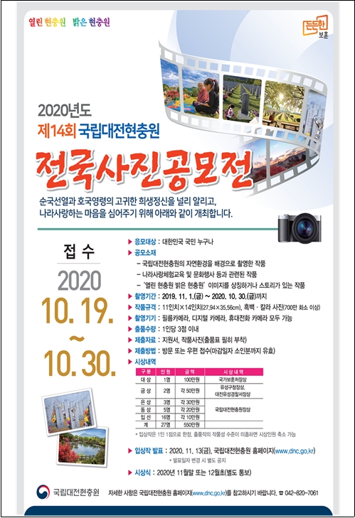제14회 전국사진공모전 관련 자세한 사항은 국립대전현충원 선양팀(042-820-7061~5)으로 문의하면 된다.