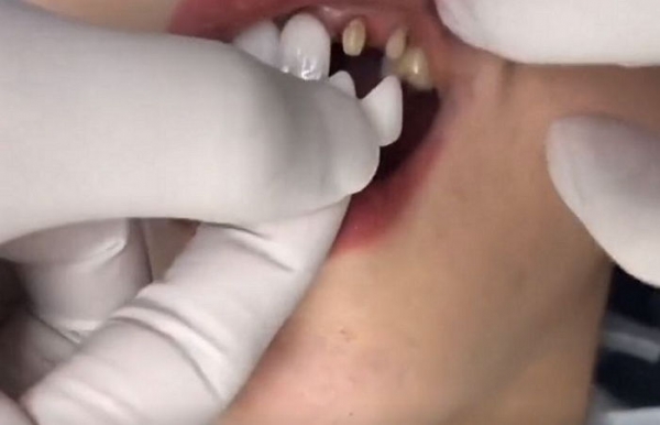 영상 속 여성의 치아는 인조 치아를 붙이기 위해 많이 갈아낸 상태로 노랗고 삐죽삐죽한 모양이다. 원래 봐온 치아가 아닌 생니를 갈아낸 모양이라 다소 충격적인 인상을 주기도 한다.
