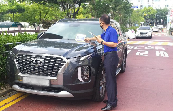구는 주민신고제 운영 안내문을 보호구역 내 주차 차량에 배포하면서 현장 주민들에게 주민신고제도 취지를 설명하고 자발적 동참을 유도했다.